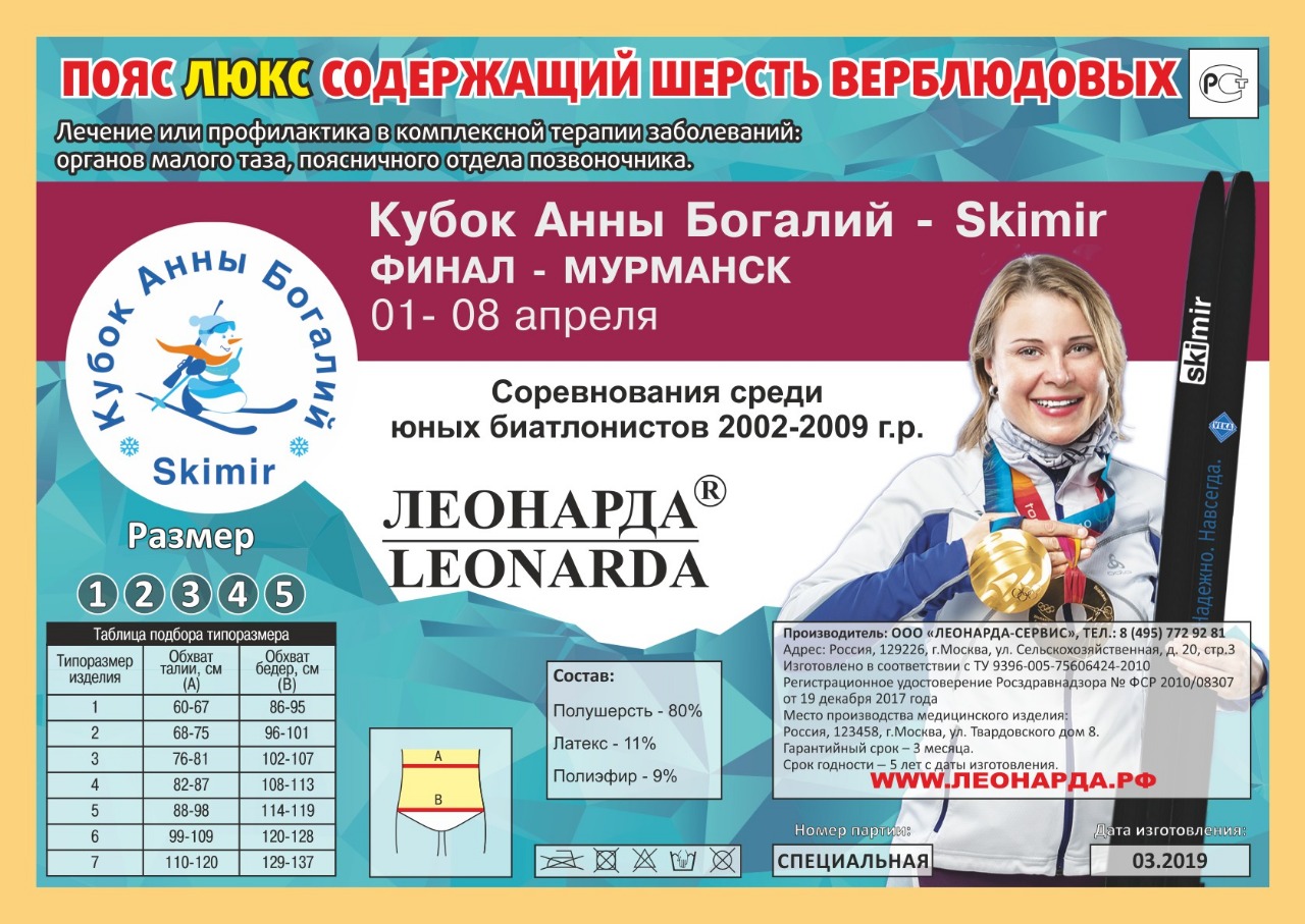 ООО «ЛЕОНАРДА-СЕРВИС» в лице Генерального директора Резвова А.В. поддержало призеров и их тренеров на финальном этапе кубка Анны Богалий — Skimir 01-08 апреля 2019 г., Мурманск.