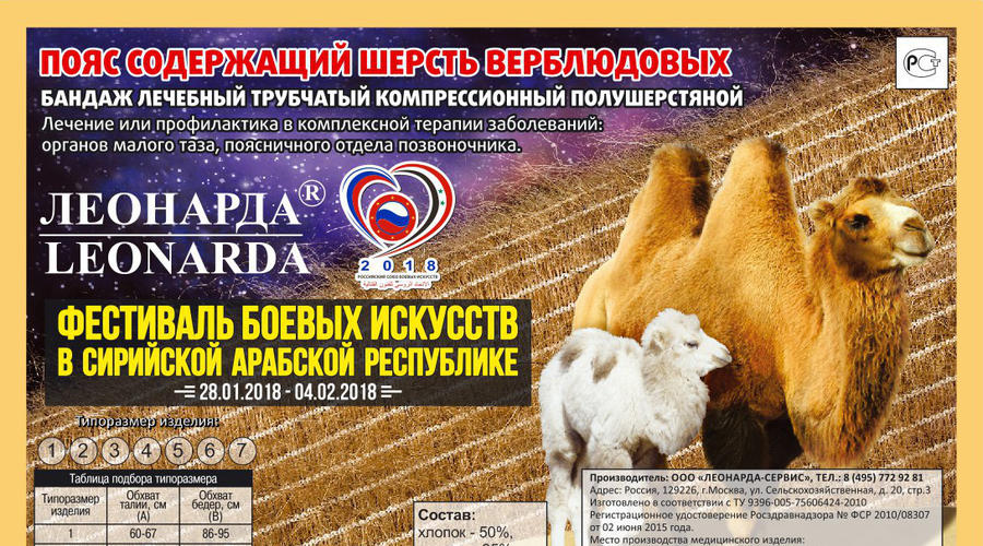 ООО «ЛЕОНАРДА-СЕРВИС» в лице Резвова Андрея Владимировича, поддержало поездку Российского Союза Боевых Искусств в Сирию, предоставив в качестве подарков свою медицинскую продукцию
