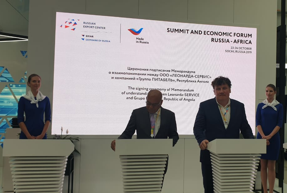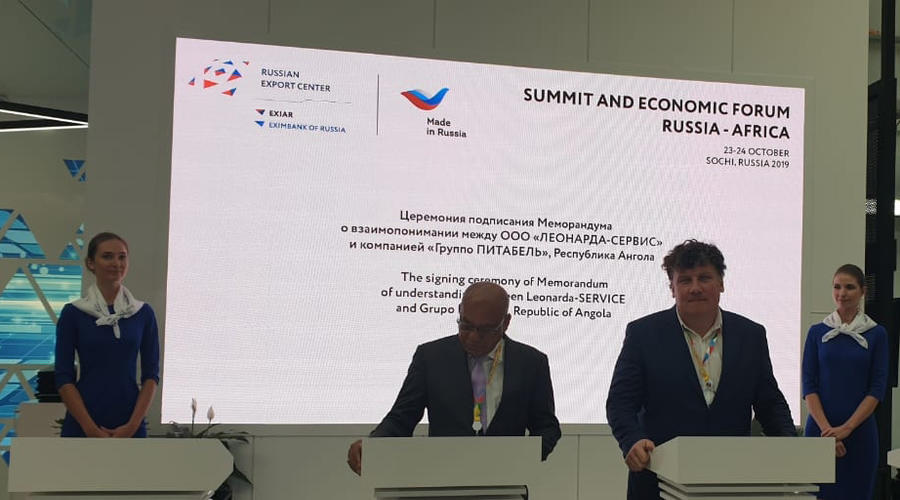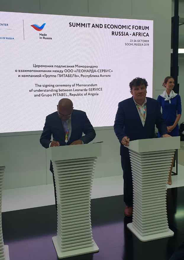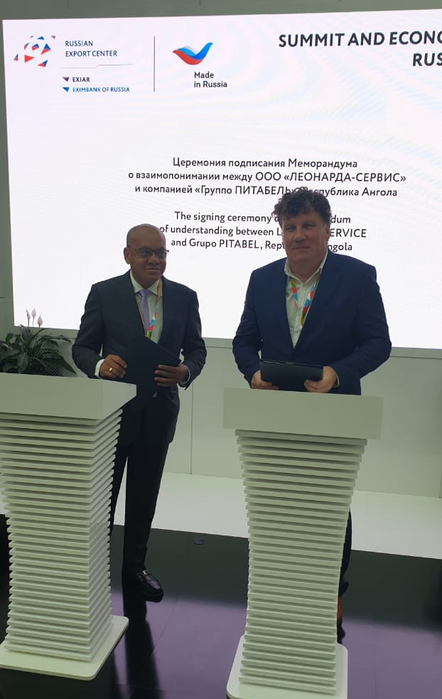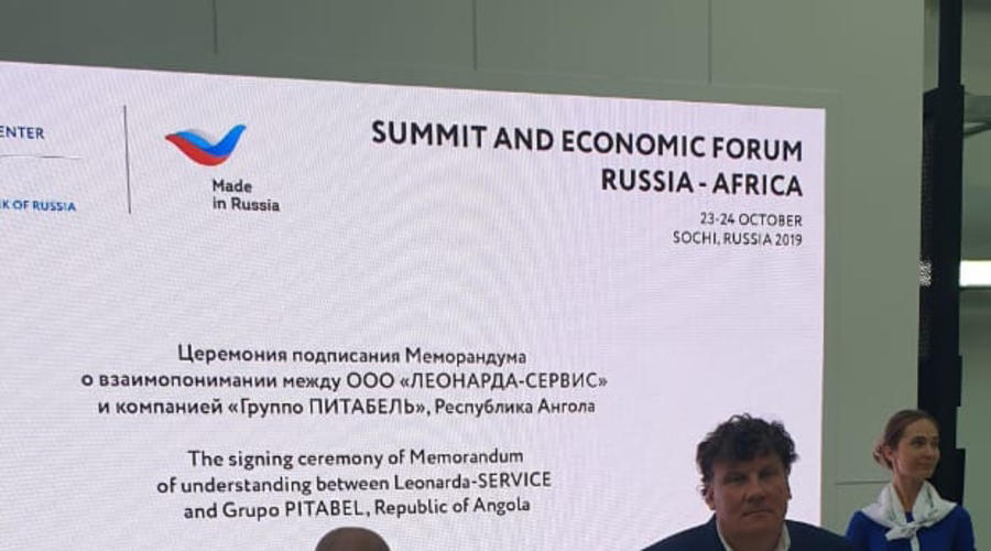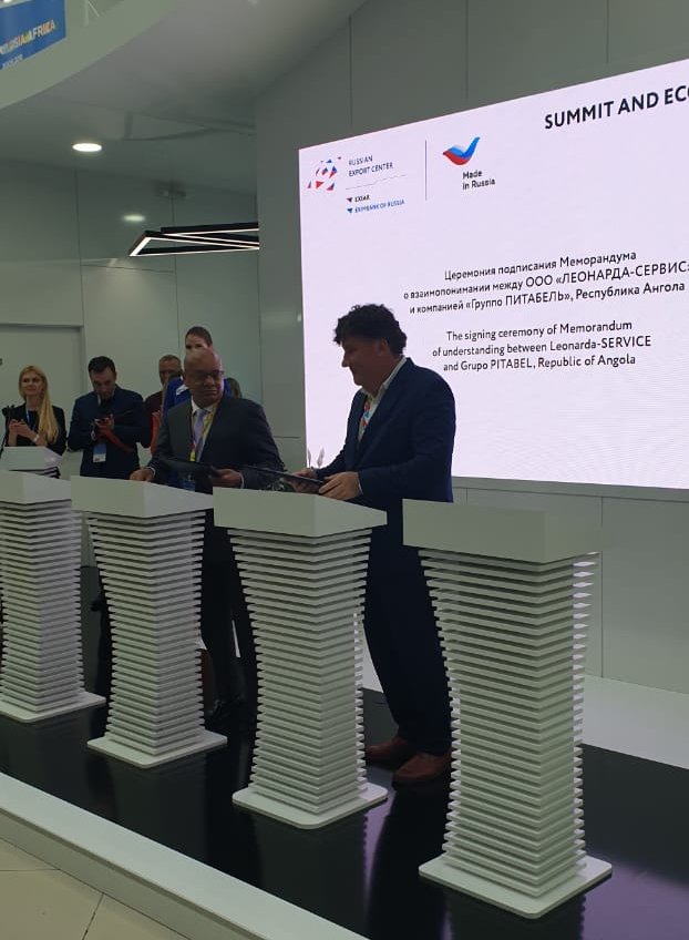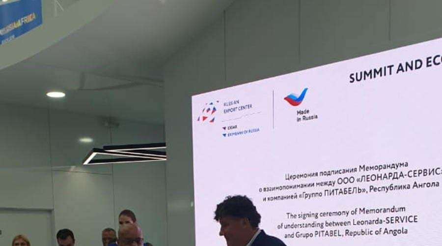 На саммите “Россия-Африка” в Сочи состоялось подписание меморандума о взаимопонимании между ангольской компанией “Групо Питабель” (подписант – председатель совета директоров Абел Домингуш Сегунда) и инновационной российской компанией ООО ”ЛЕОНАРДА-СЕРВИС” (подписант – генеральный директор Андрей Резвов). Российское предприятие специализируется на изготовлении высокотехнологичной продукции медицинского назначения, а также разработках в области термоэлектричества, теплообмена и энергосбережения.