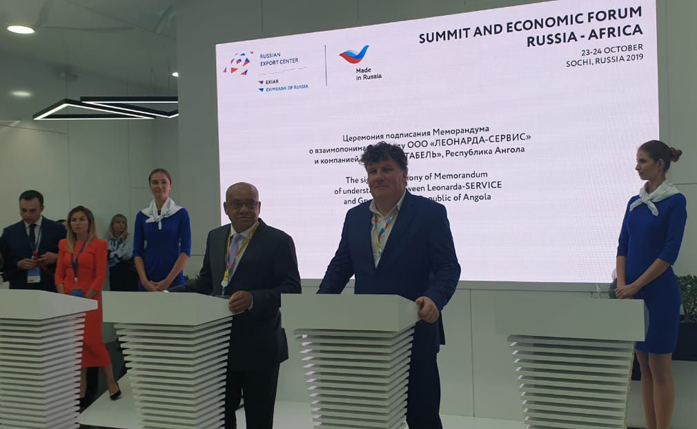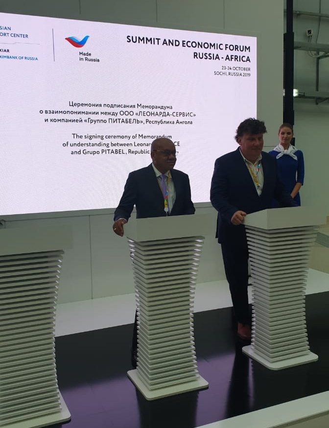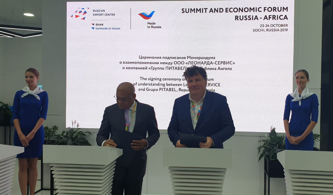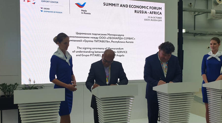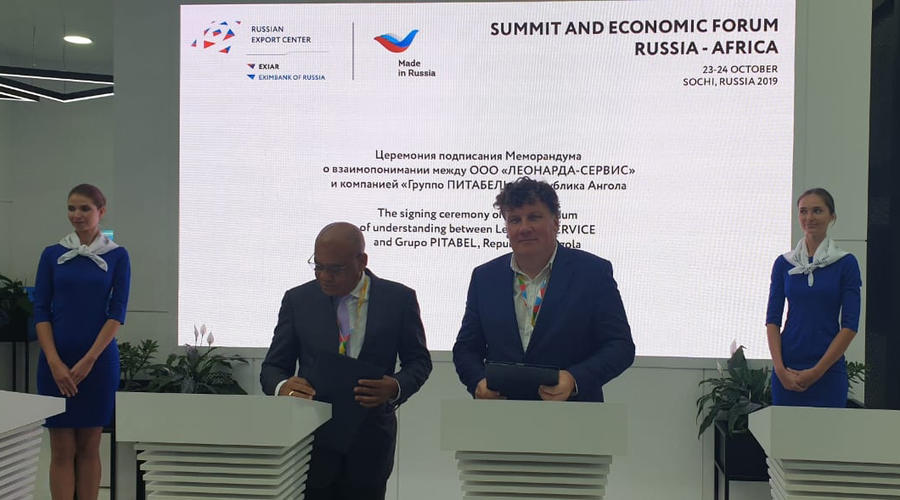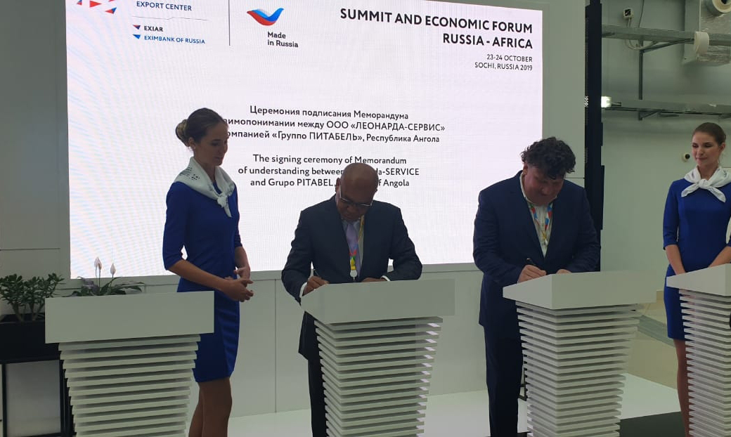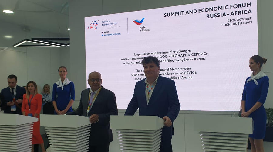 На саммите “Россия-Африка” в Сочи состоялось подписание меморандума о взаимопонимании между ангольской компанией “Групо Питабель” (подписант – председатель совета директоров Абел Домингуш Сегунда) и инновационной российской компанией ООО ”ЛЕОНАРДА-СЕРВИС” (подписант – генеральный директор Андрей Резвов). Российское предприятие специализируется на изготовлении высокотехнологичной продукции медицинского назначения, а также разработках в области термоэлектричества, теплообмена и энергосбережения.