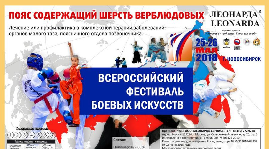 25 - 26 мая 2018 года в городе Новосибирск в центре спортивной подготовки «Заря» прошел всероссийский фестиваль боевых искусств и спортивных единоборств «Здоровье – твой успех! Спорт для всех». Молодые бойцы из 25 российских регионов, Казахстана и Японии, всего около 3000 участников события показывали свое мастерство в соревновательной программе. В общей сложности были представлены 17 видов боевых искусств и спортивных единоборств.